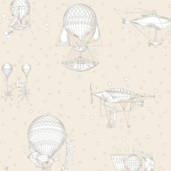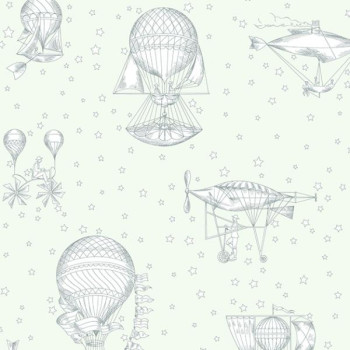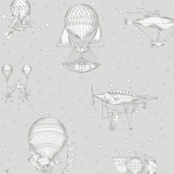 Šedá vliesová dětská tapeta na zeď - balony a vzducholodě JR3011, Jack´N Rose 2024, Grandeco