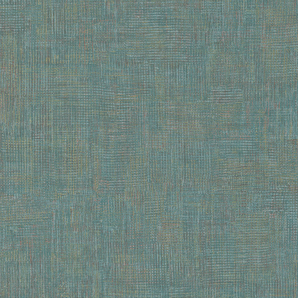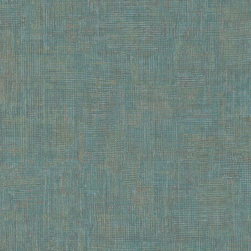 Vliesová tapeta na zeď s textilní strukturou, tyrkysová se zlatými odlesky.