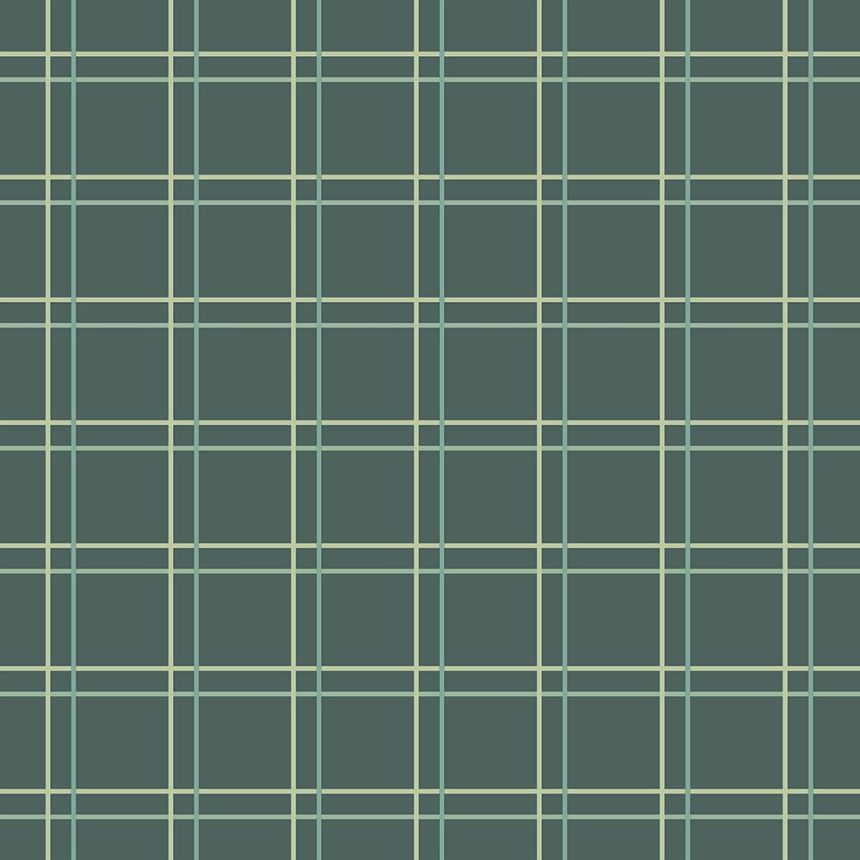 Zelená geometrická vliesová tapeta, vzor připomíná tartanovou látku.