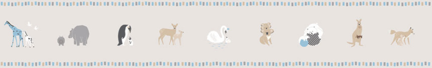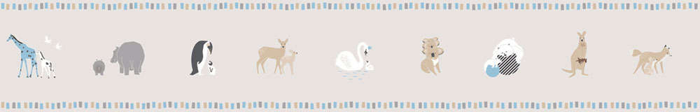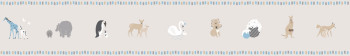 Šedá samolepící dětská bordura s motivy zvířátek.