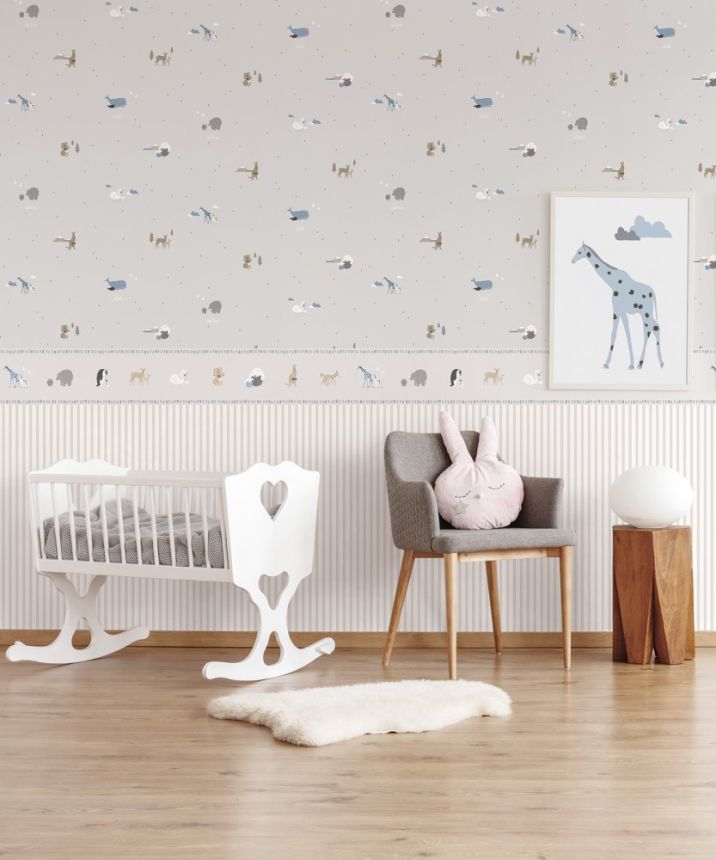 Šedá dětská samolepící bordura se zvířátky 7504-2, Noa, ICH Wallcoverings