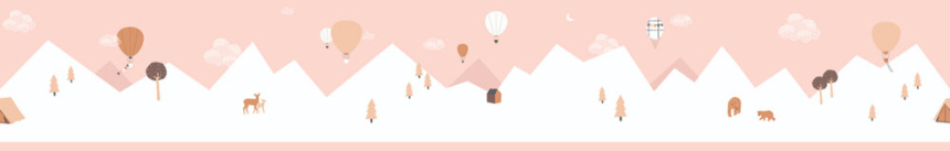 Růžová dětská samolepící bordura s motivy hor, balonů.