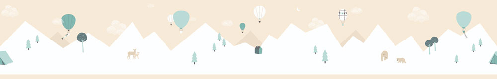 Krémová dětská samolepící bordura s motivy hor, balonů.