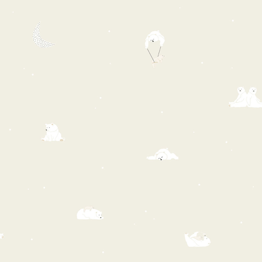 Béžová vliesová tapeta, bílé puntíky. Tapeta vhodná nejen do dětského pokojíčku.