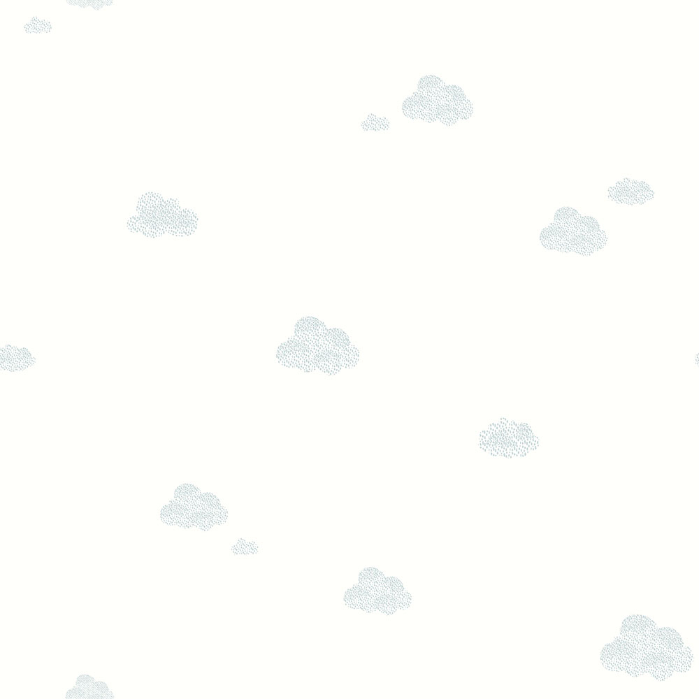 Bílá vliesová tapeta do dětského pokojíčku, mentolově zelené mráčky.