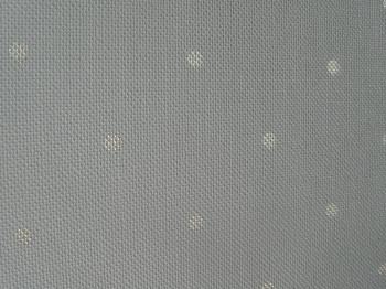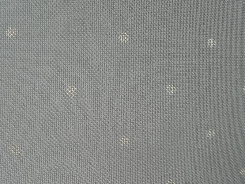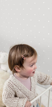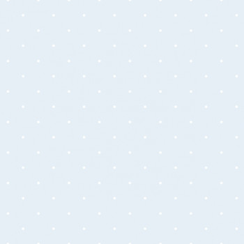 Bílý puntík na světle modré vliesové tapetě s jemnou textilní strukturou.
