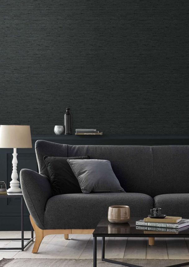 Vliesová tapeta v sytých odstínech tyrkysové a černé.