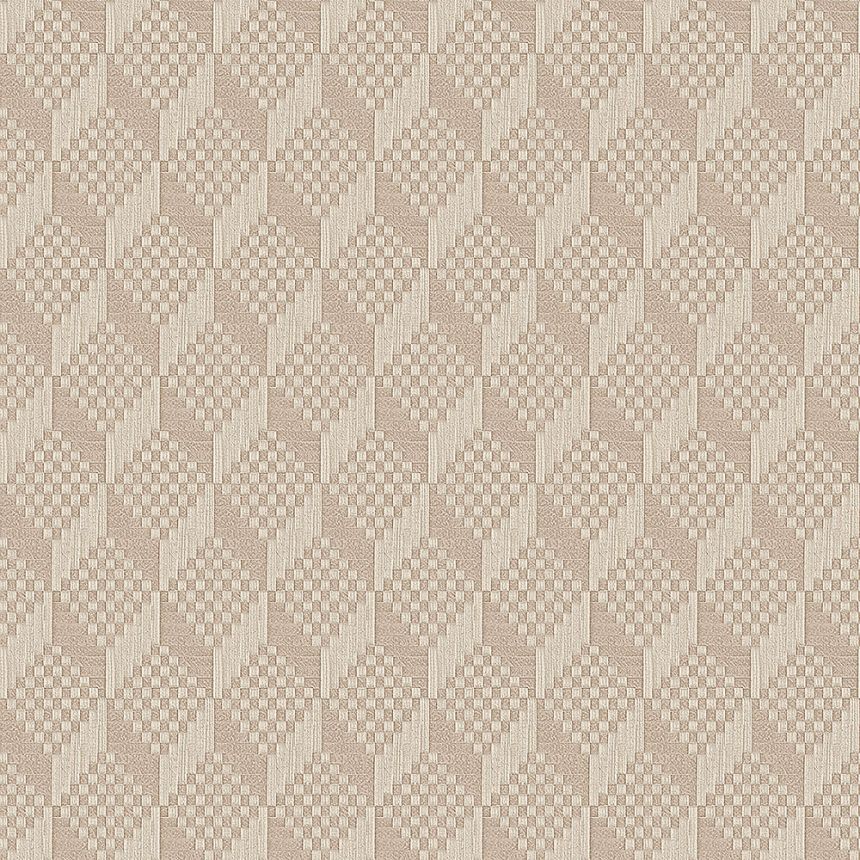 Luxusní jemně plastická béžová pololesklá vliesová tapeta na zeď, 3D geometrický vzor. Tapeta vhodná do ložnice, obývacího pokoje, nebo pracovny.