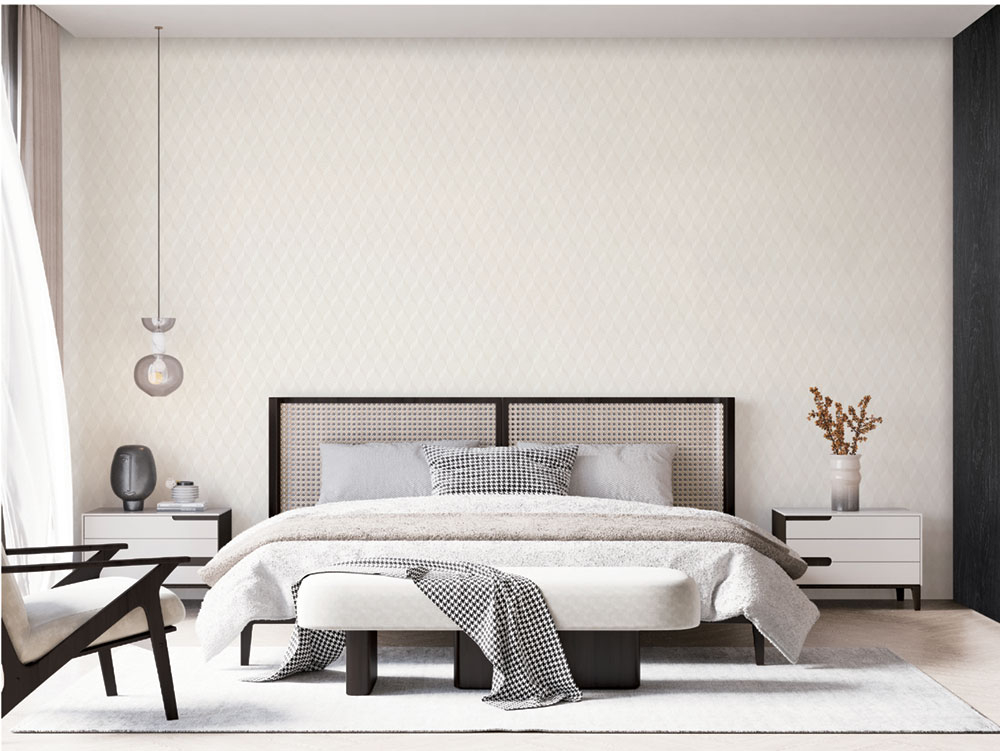 Luxusní jemně plastická krémová pololesklá vliesová tapeta na zeď, 3D geometrický vzor. Tapeta vhodná do ložnice, obývacího pokoje, nebo pracovny.