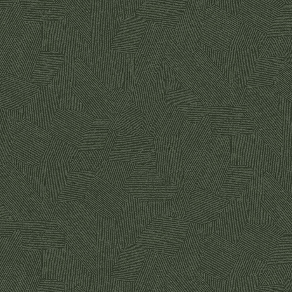 Tmavě zelená vliesová tapeta na zeď, jemný metalický pololesk, grafický etno vzor.