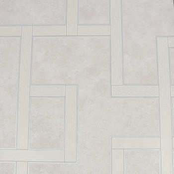 Luxusní vliesová tapeta s výraznou strukturou betonu s geometrickými tvary na světle šedém podkladu se stříbrným žíháním.