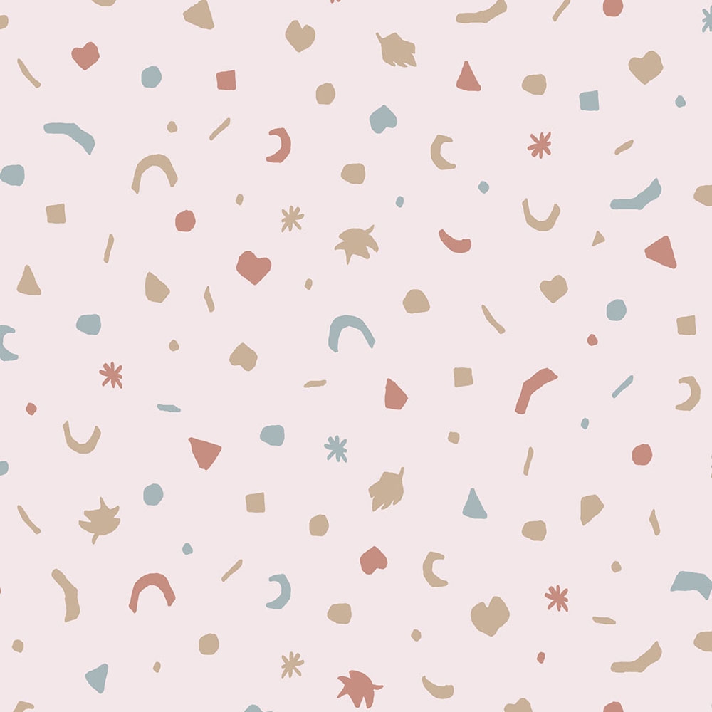 Růžová dětská vliesová tapeta - tvary pro rozvoj dětské fantazie.