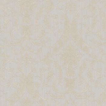 Šíře role 1,06m. Luxusní zámecká vliesová tapeta na zeď, imitace krémově-zlaté látky, ornamentální vzor se zlatými třpytkami.