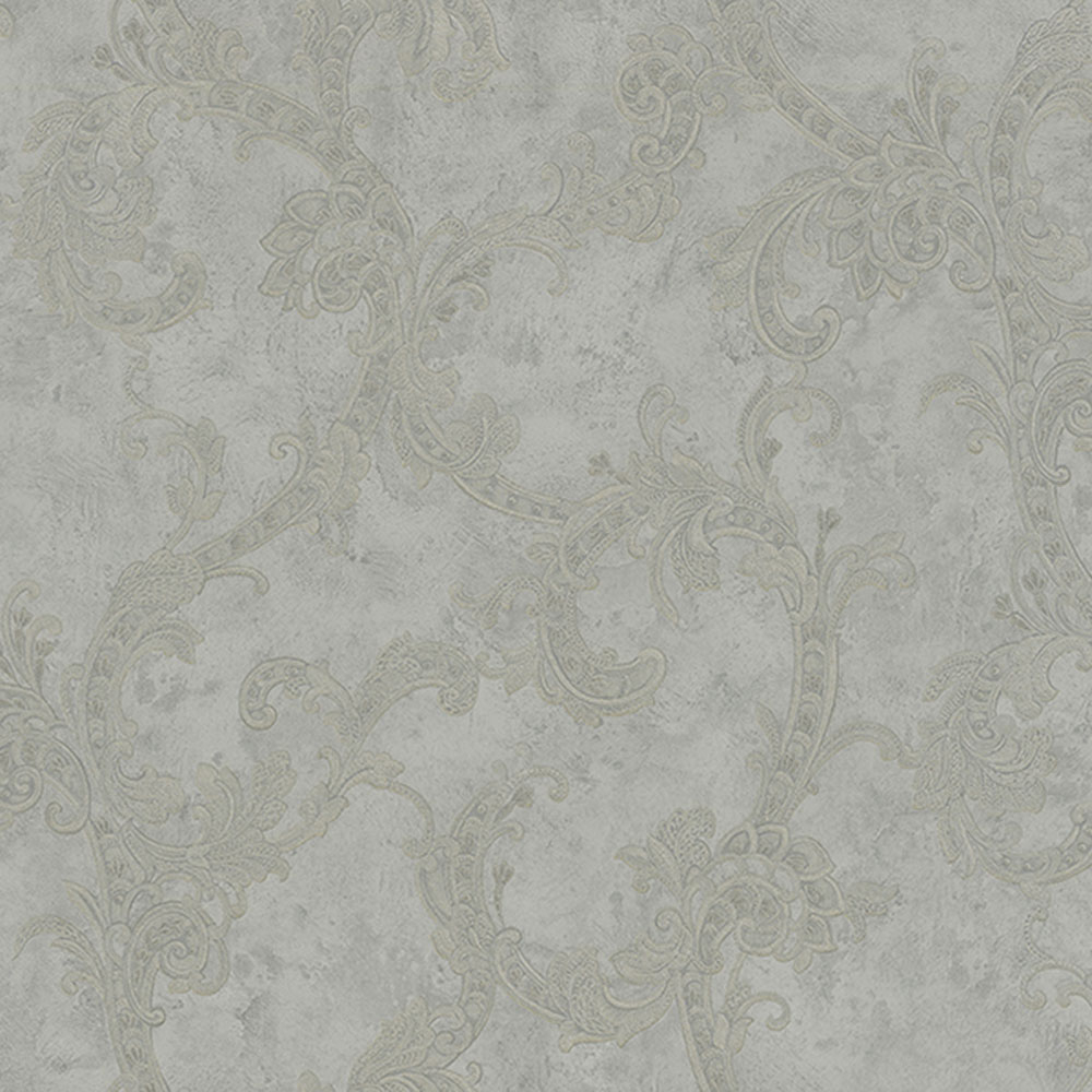 Šíře role 1,06m. Šedá luxusní zámecká vliesová tapeta na zeď - vinylový povrch, plastický ornamentální vzor.