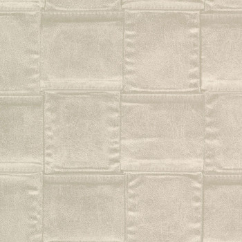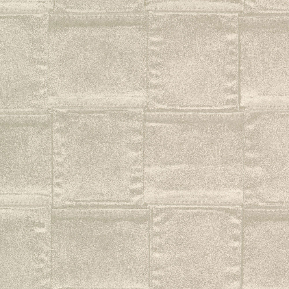Hrubě strukturovaná vliesová tapeta imitace světle béžové prošívané kůže dodá interiéru luxus a styl.