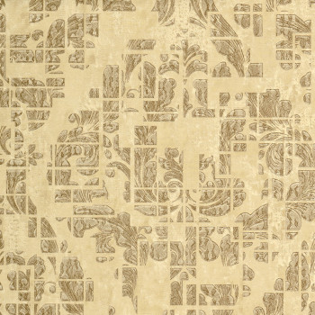 Vliesová tapeta na zeď s vinylovým povrchem se zámeckým ornamentálním vzorem v béžových a hnědých odstínech.