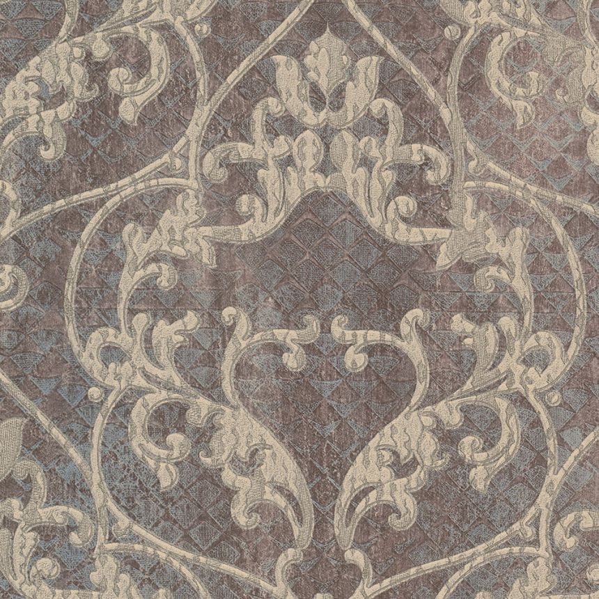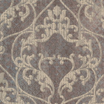 Vliesová tapeta na zeď s vinylovým povrchem se zámeckým ornamentálním vzorem hnědých a modrých odstínech se zlatými odlesky.