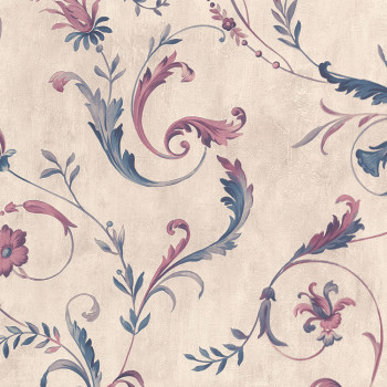Luxusní vliesová tapeta s rostlinnými ornamenty na jemném štukovém podkladu v béžové barvě.