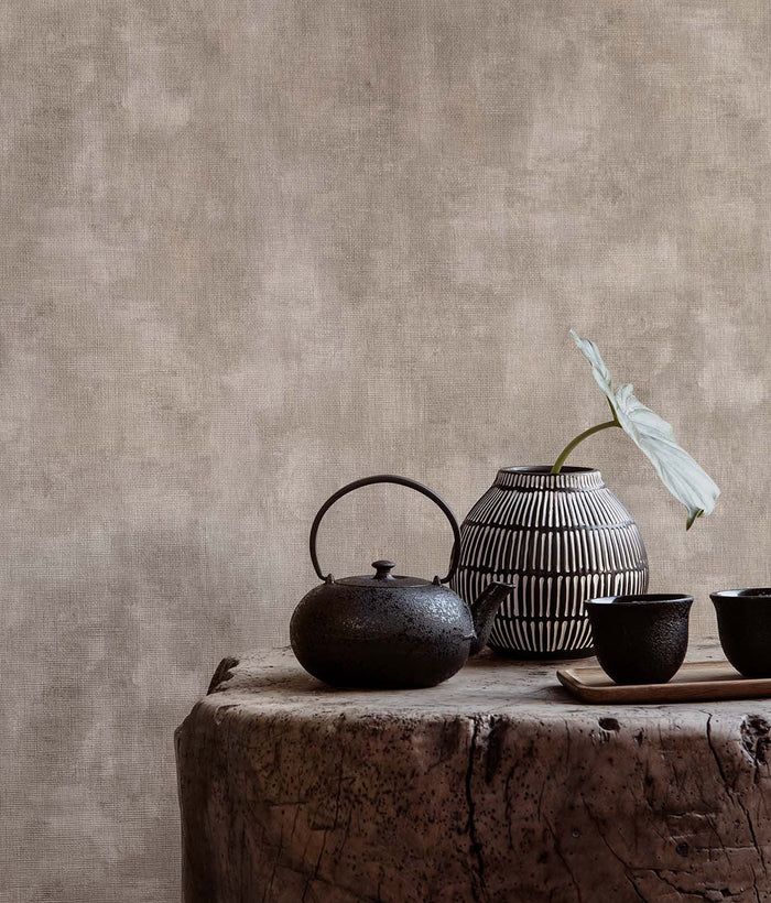 Vliesová tapeta s výraznou textilní strukturou v pískové barvě.