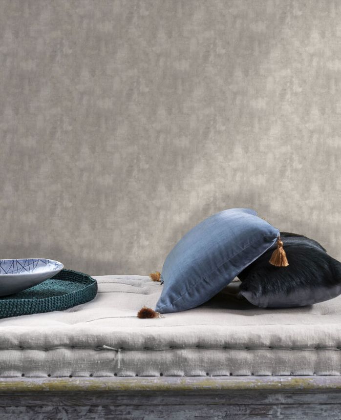 Strukturovaná vliesová tapeta s výrazným textilním vzorem v šedé barvě.