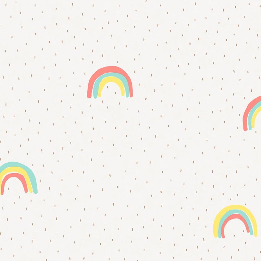 Vliesová, dětská tapeta. Bronzové čárky a duha ve žluté, růžové a zelené barvě.