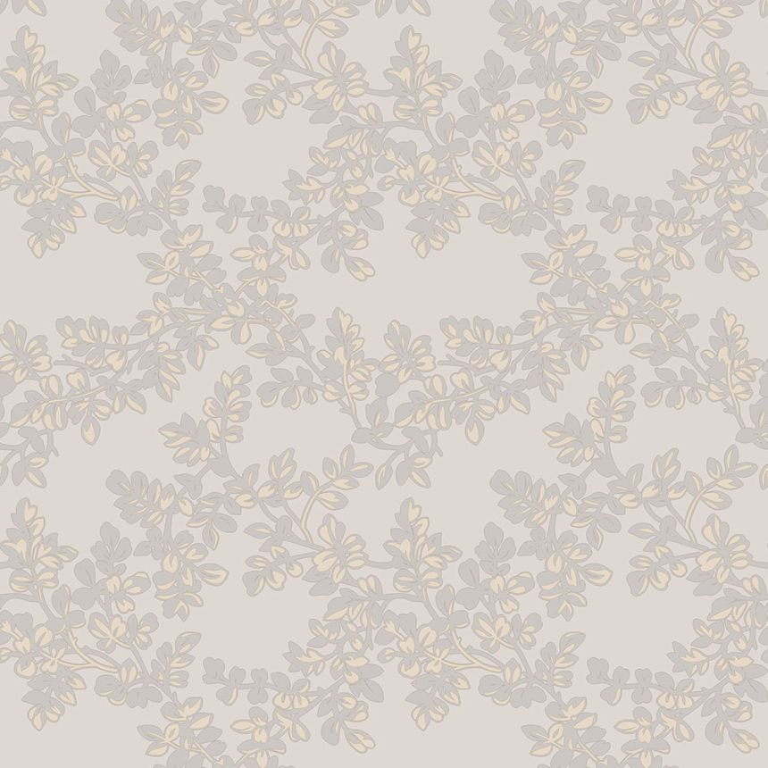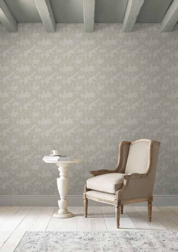 Vliesová tapeta s šedobéžovými větvičkami na světle šedém hladkém podkladu vnese do interiéru příjemnou atmosféru.