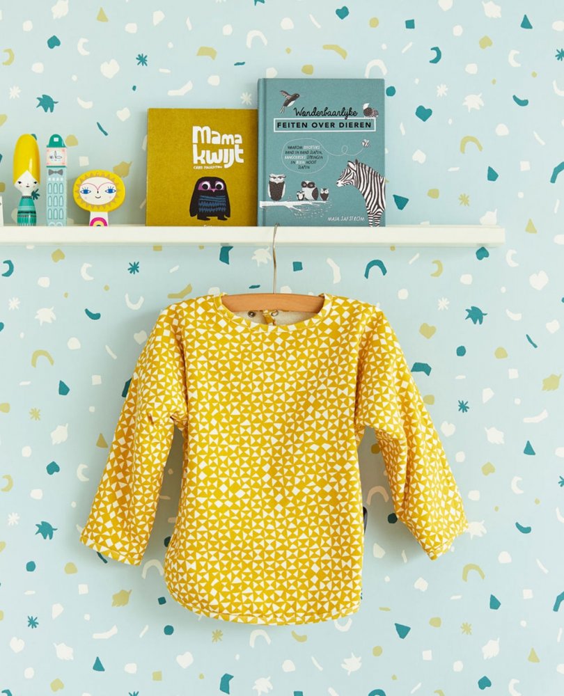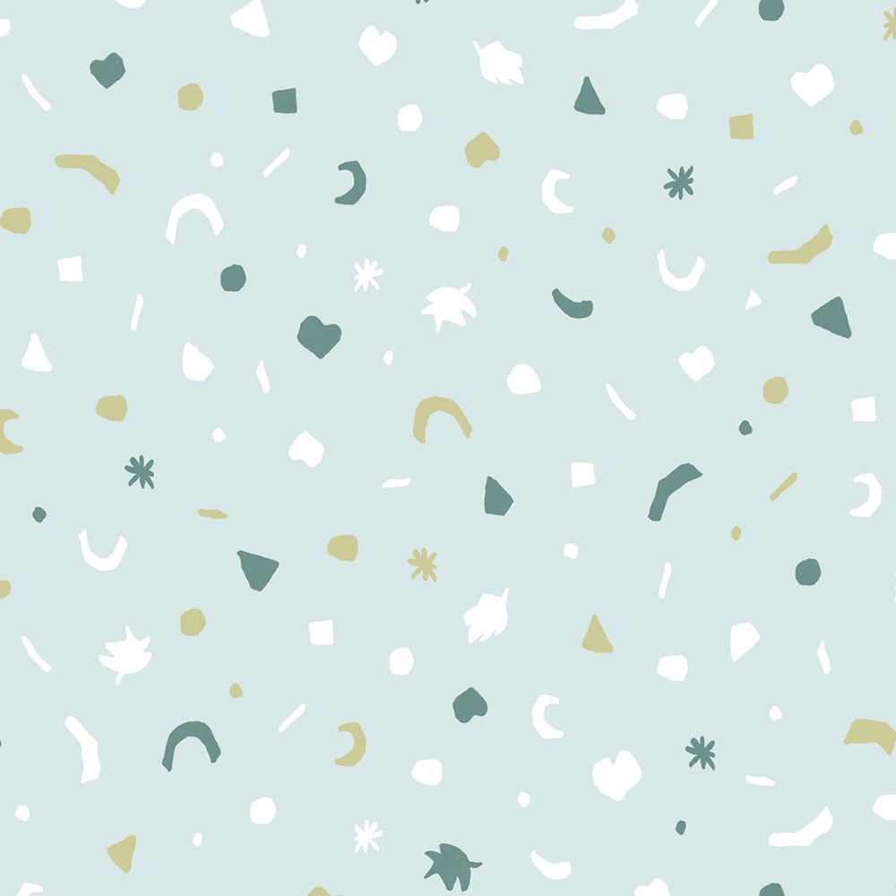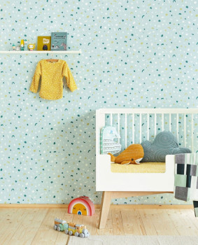 Vliesová, dětská, modrá tapetana zeď - tvary pro rozvoj dětské fantazie.