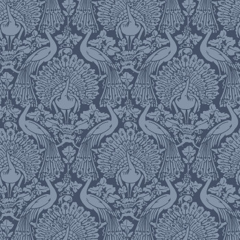 Vliesová metalická tapeta s pávy na tmavě modrém hladkém podkladu vnese do interiéru příjemnou atmosféru.
