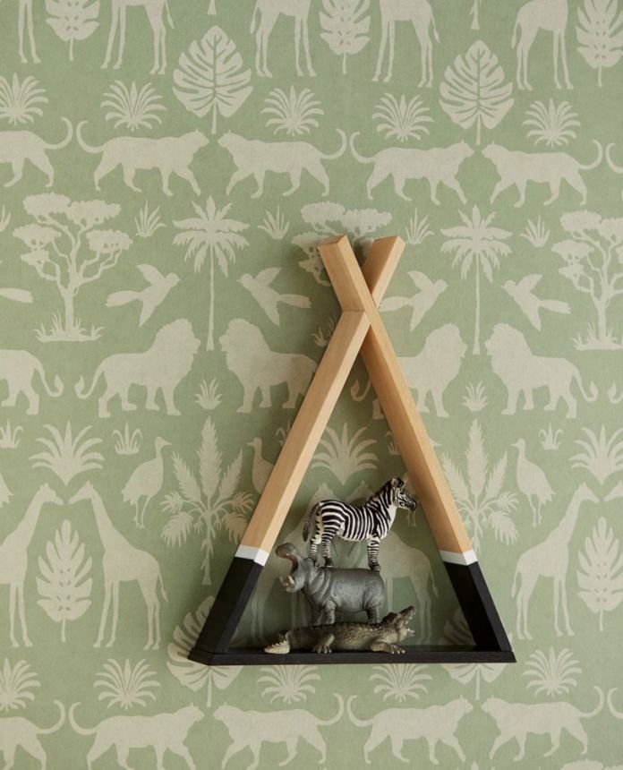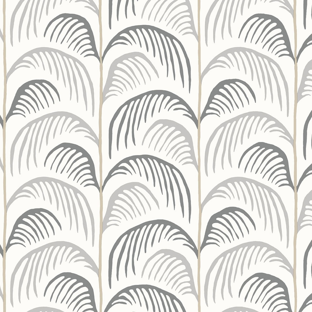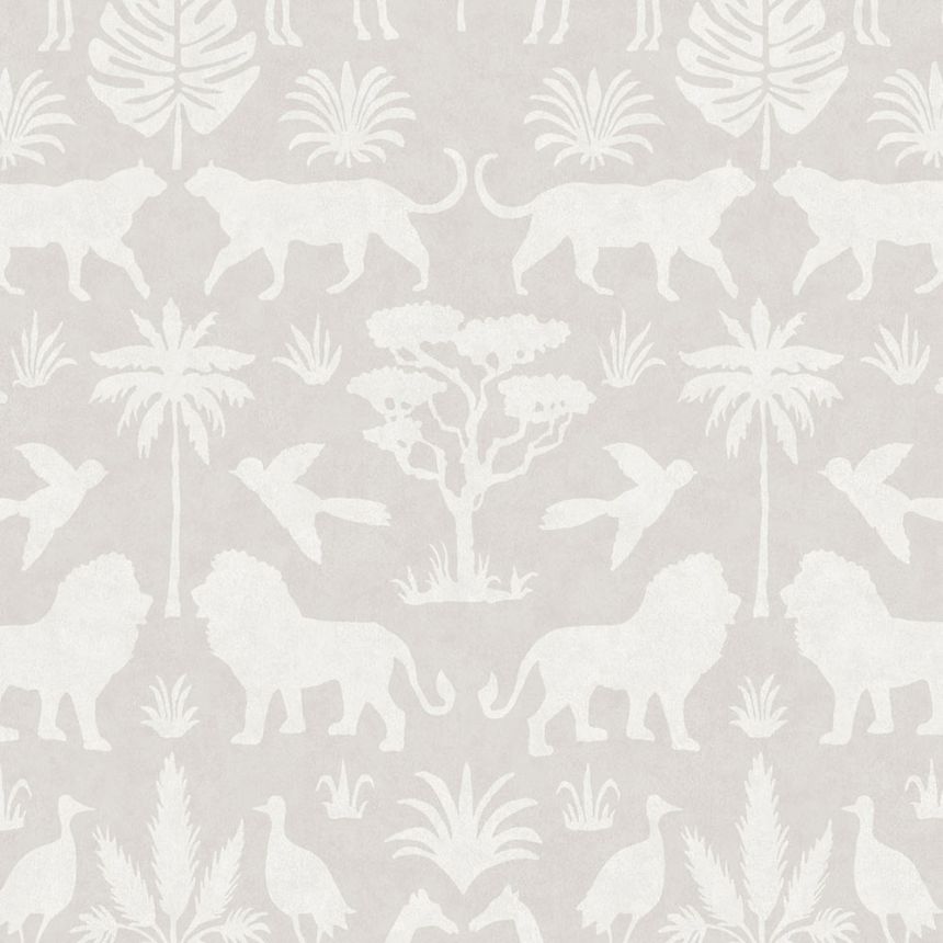 Šedá vliesová dětská tapeta na zeď s palmami.