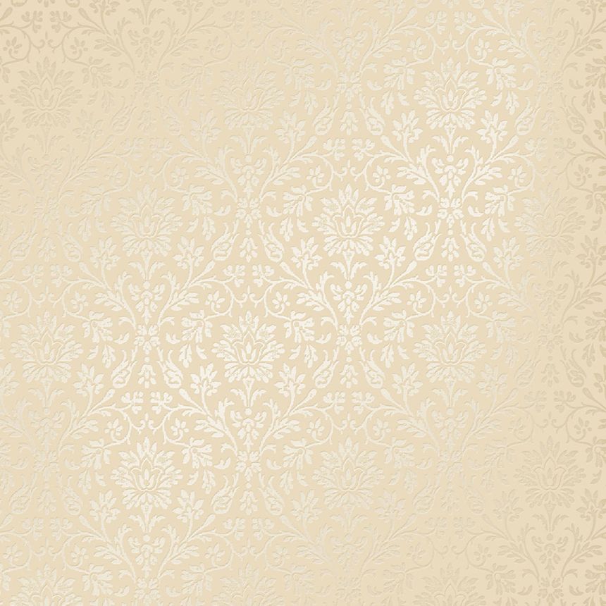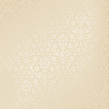 Vliesová tapeta s béžovými perleťovými květinovými ornamenty na světle béžovém hladkém podkladu vnese do interiéru příjemnou atmosféru.