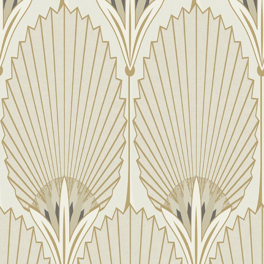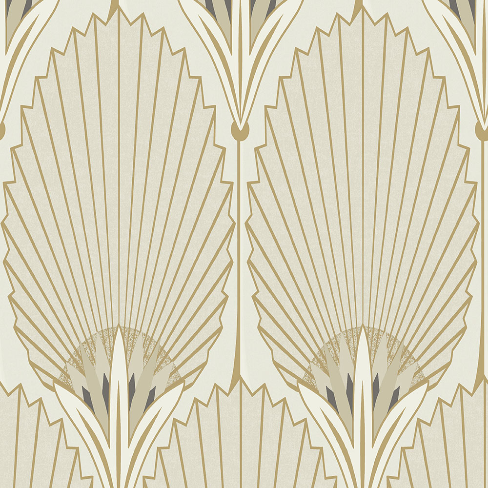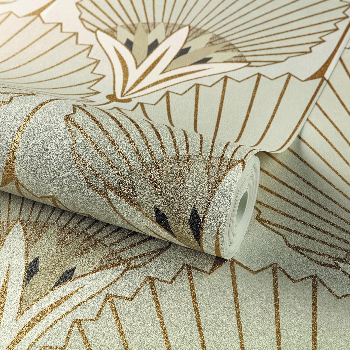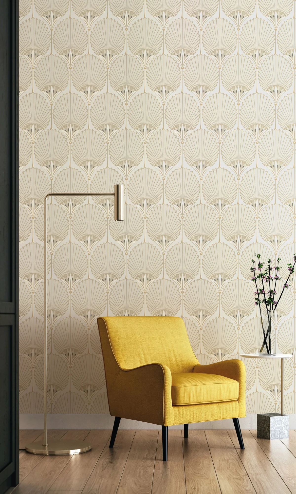 Vliesová tapeta se zlatými geometrickými vzory na strukturovaném krémovém podkladu vnese do interiéru příjemnou atmosféru luxusu.