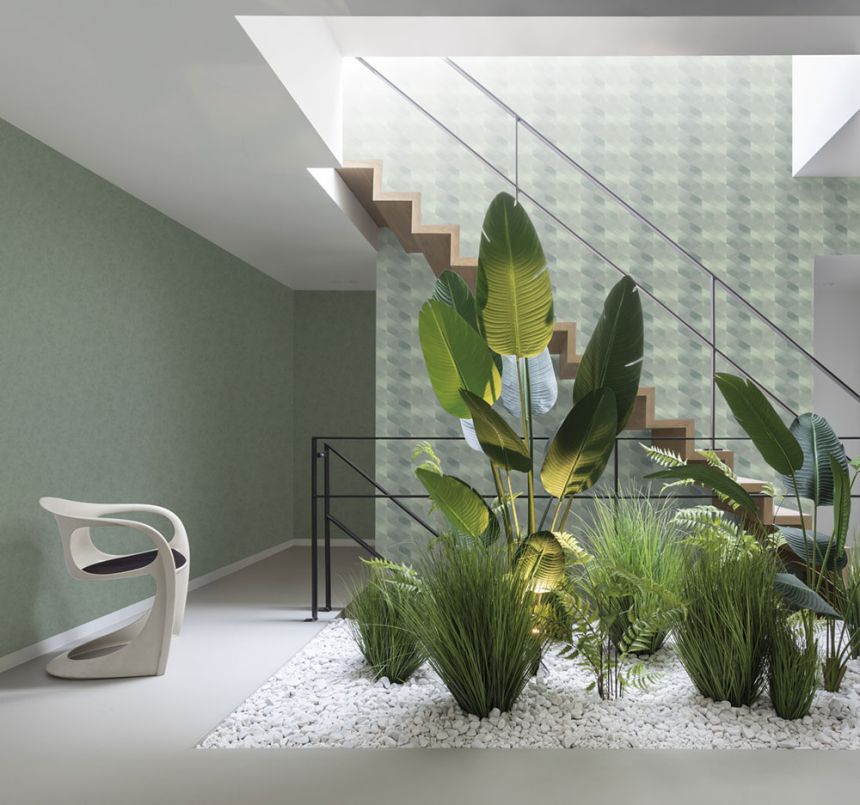 Luxusní vliesová tapeta s geometrickými tvary ve světle zelených odstínech zútulní Váš interiér.
