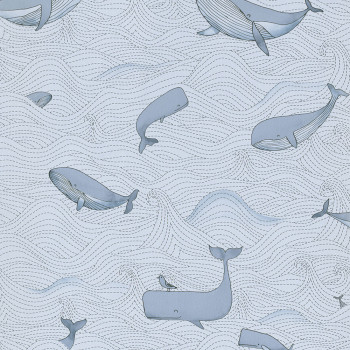 Modrá vliesová dětská tapeta s velrybami 220732, Doodleedo, BN Walls