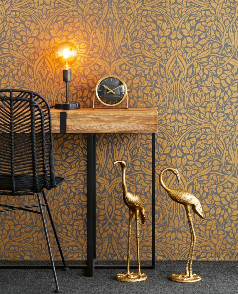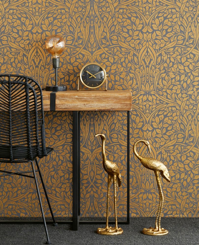 "Vířící listy" - podklad hnědý, listy zlato-bronzové odstíny.Kolekce inspirovaná dílem odvážné, nezávislé a stylové Fridy Kahlo.