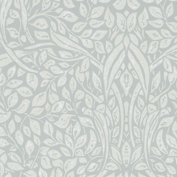 "Vířící listy" - tyrkysový podklad, smetanovo-šedé listy. Kolekce inspirovaná dílem odvážné, nezávislé a stylové Fridy Kahlo.
