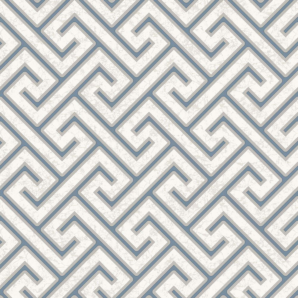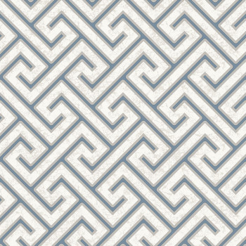 Geometrická vliesová tapeta na zeď s vinylovým povrchem v šedých a modrých odstínech s jemnými odlesky.