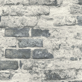 Vliesová hrubě strukturovaná tapeta s motivem cihlové zdi v šedé barvě.