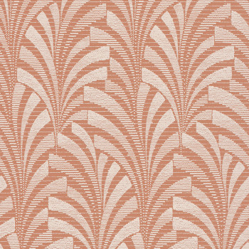 Cihlově červená vliesová tapeta s výrazným plastickým vzorem stylizovaných listů.