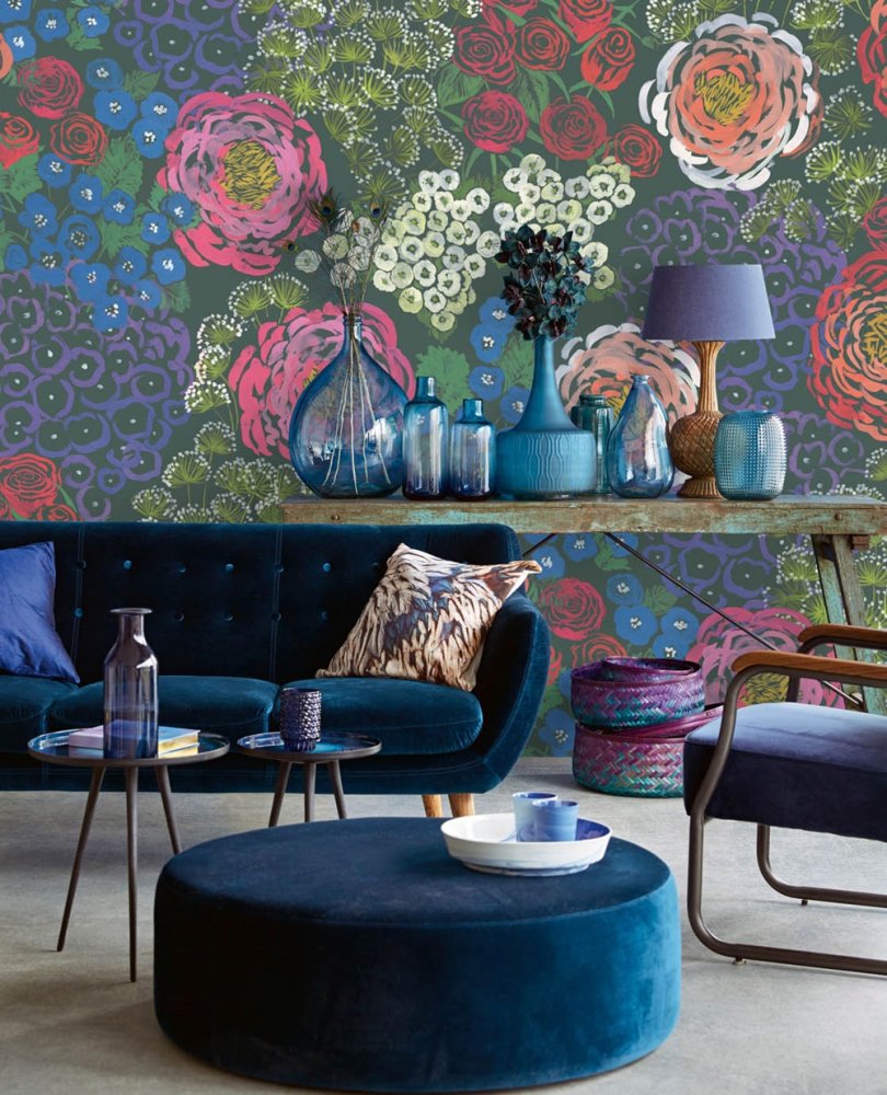 Pestrý květinový vzor inspirovaný dílem odvážné, nezávislé a stylové Fridy Kahlo - " Maluji květiny, takže nezemřou".Tapeta má návazný vzor, pro větší šířku stačí přikoupit další kus.