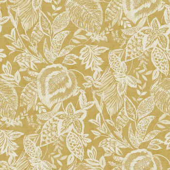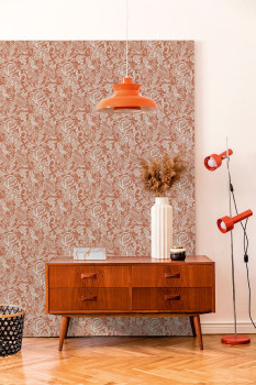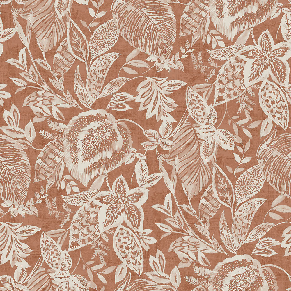 Cihlová hrubě strukturovaná tapeta s motivy listů.