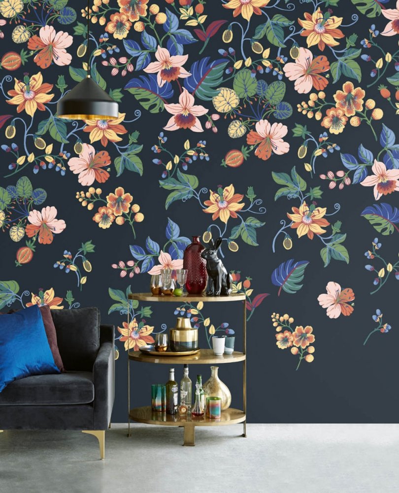 Pestrý květinový vzor inspirovaný dílem odvážné, nezávislé a stylové Fridy Kahlo - " Maluji květiny, takže nezemřou".Tapeta má návazný vzor, pro větší šířku stačí přikoupit další kus.