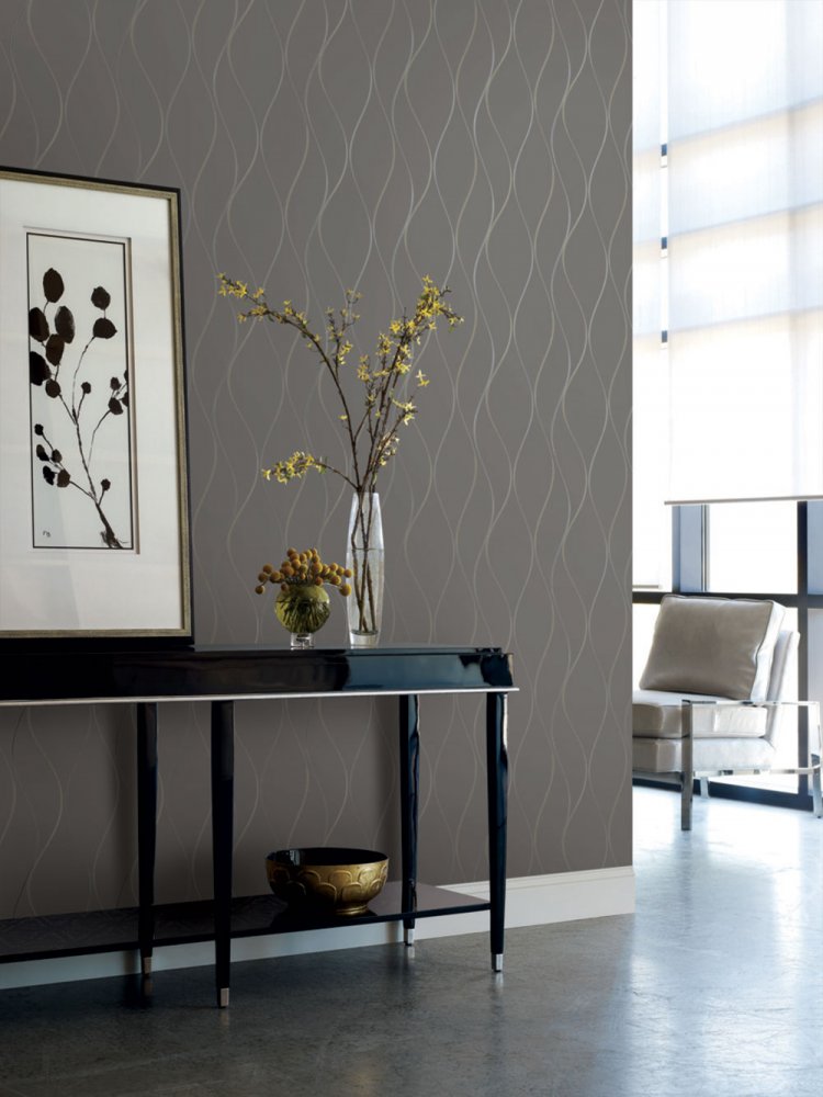Metalická šedo-černá vliesová tapeta s vlnkami Y6201405, Dazzling Dimensions 2, York