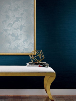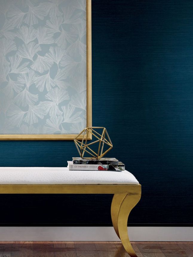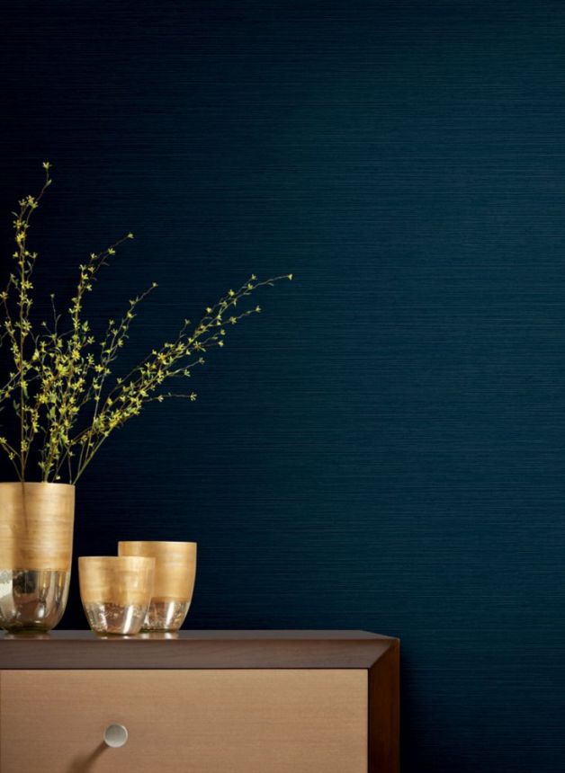 Jemně plastická temně modrá vliesová tapeta s jemným metalickým pololeskem, imitace hrubší látky.