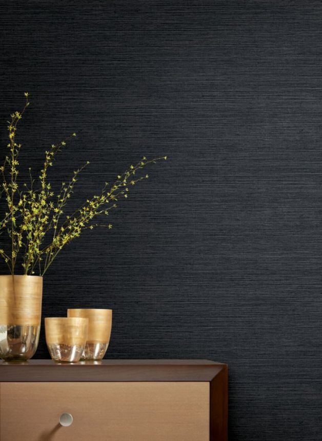 Jemně plastická černo-stříbrná vliesová tapeta na zeď, imitace hrubší látky.