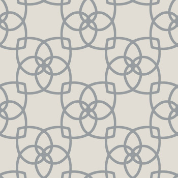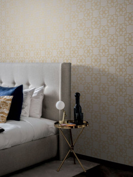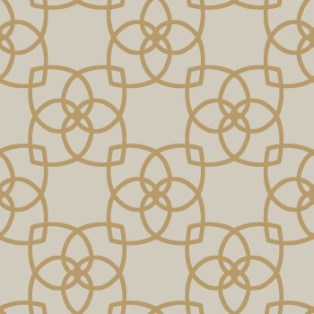Luxusní jemně strukturovaná šedo-béžová vliesová tapeta, hladké zlaté ornamenty.