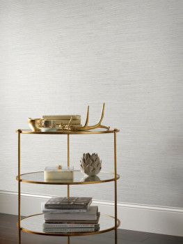 Luxusní bílá plastická vliesová tapeta s vinylovým povrchem, imitace bambusu, jemný stříbřitý pololesk.