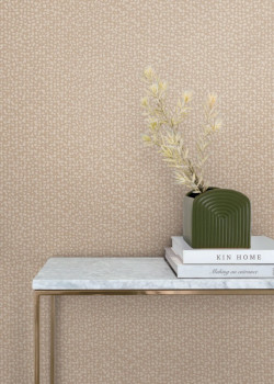 Jemně plastická hnědá vliesová tapeta na zeď, krémové flíčky.