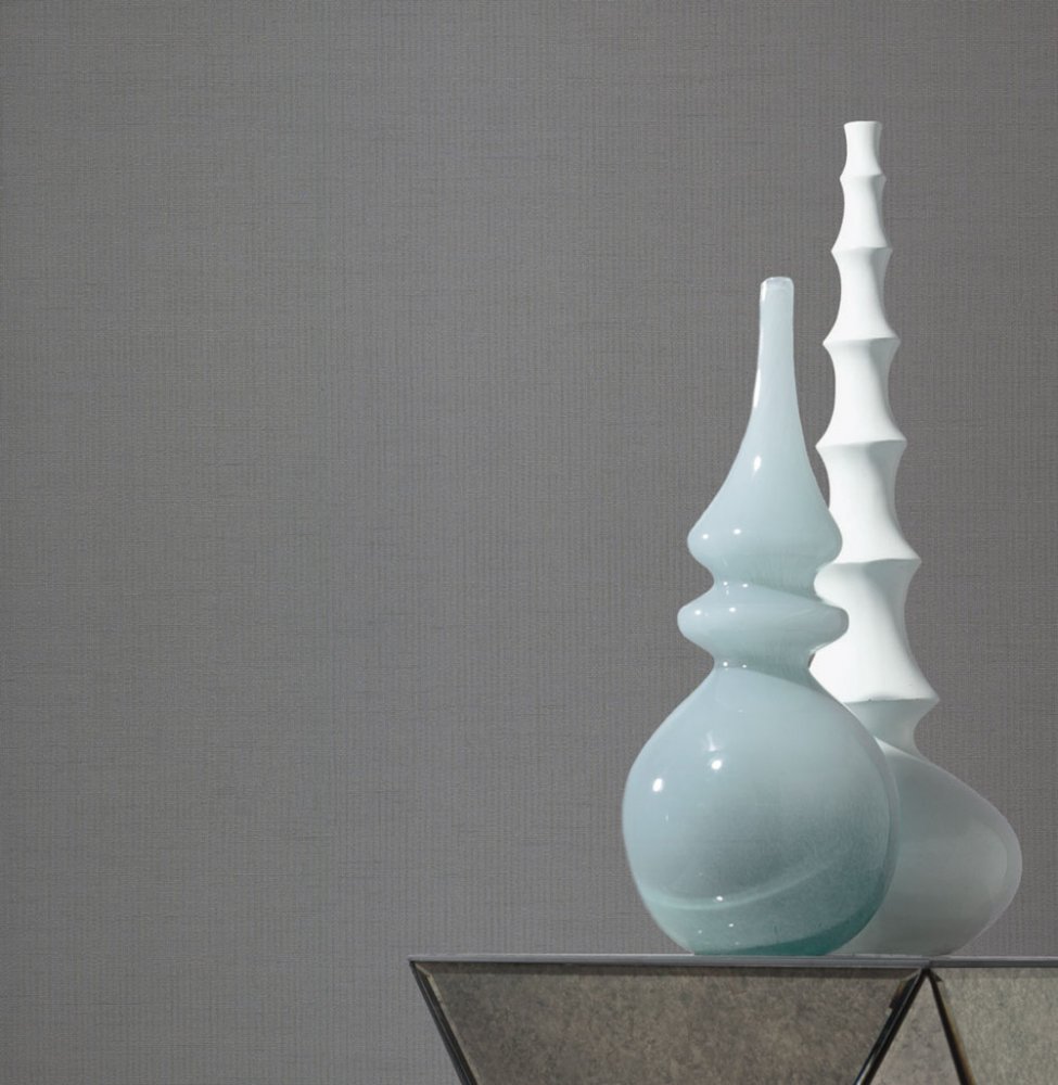 Šedo-stříbrná vliesová tapeta na zeď, imitace hrubší textilie, omyvatelný povrch.