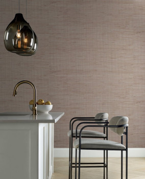 Netradiční přírodní tapeta na zeď - hnědá juta na stříbrném papírovém podkladu.