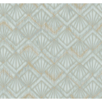 Tyrkysová vliesová tapeta na zeď, stylizované lastury s metalickým leskem.